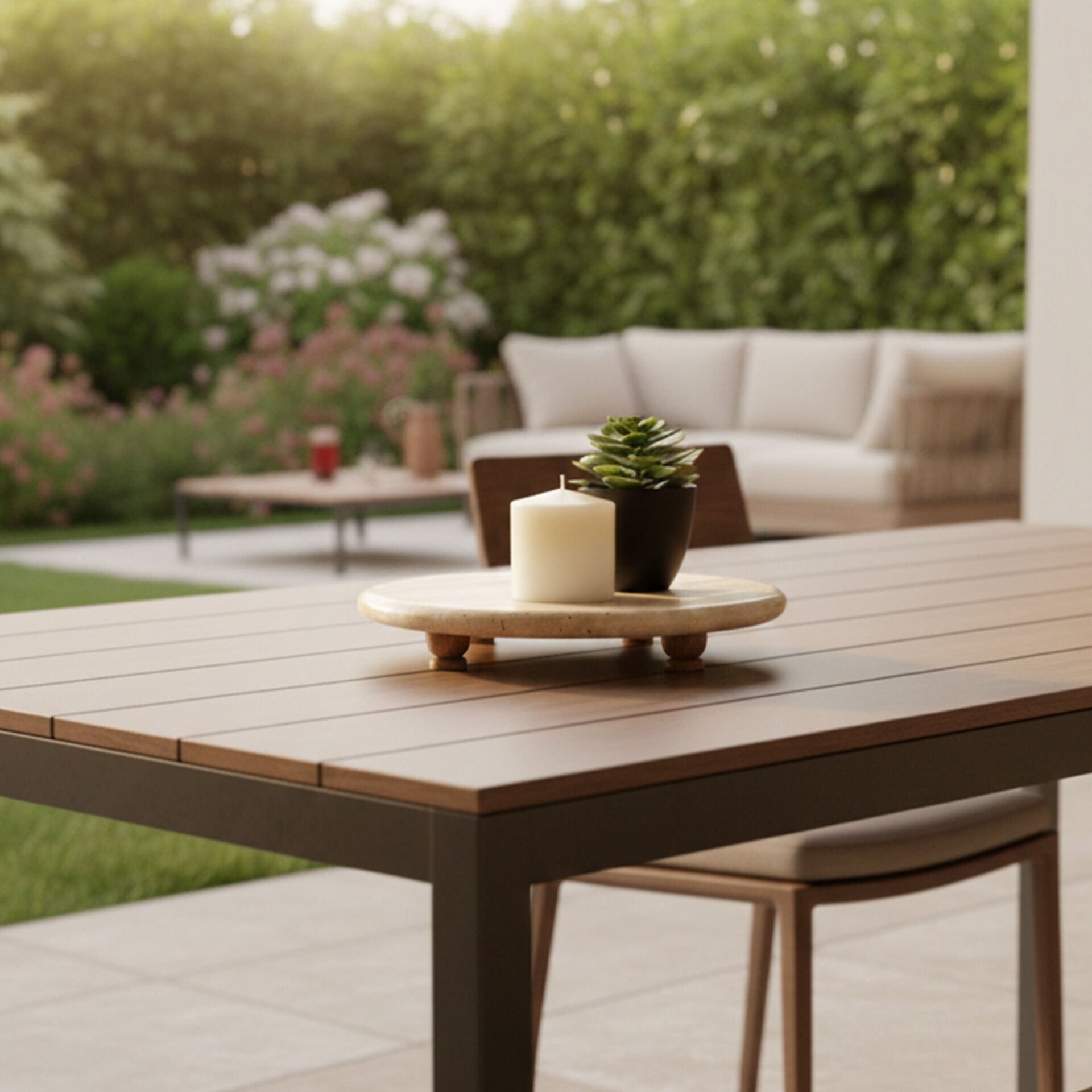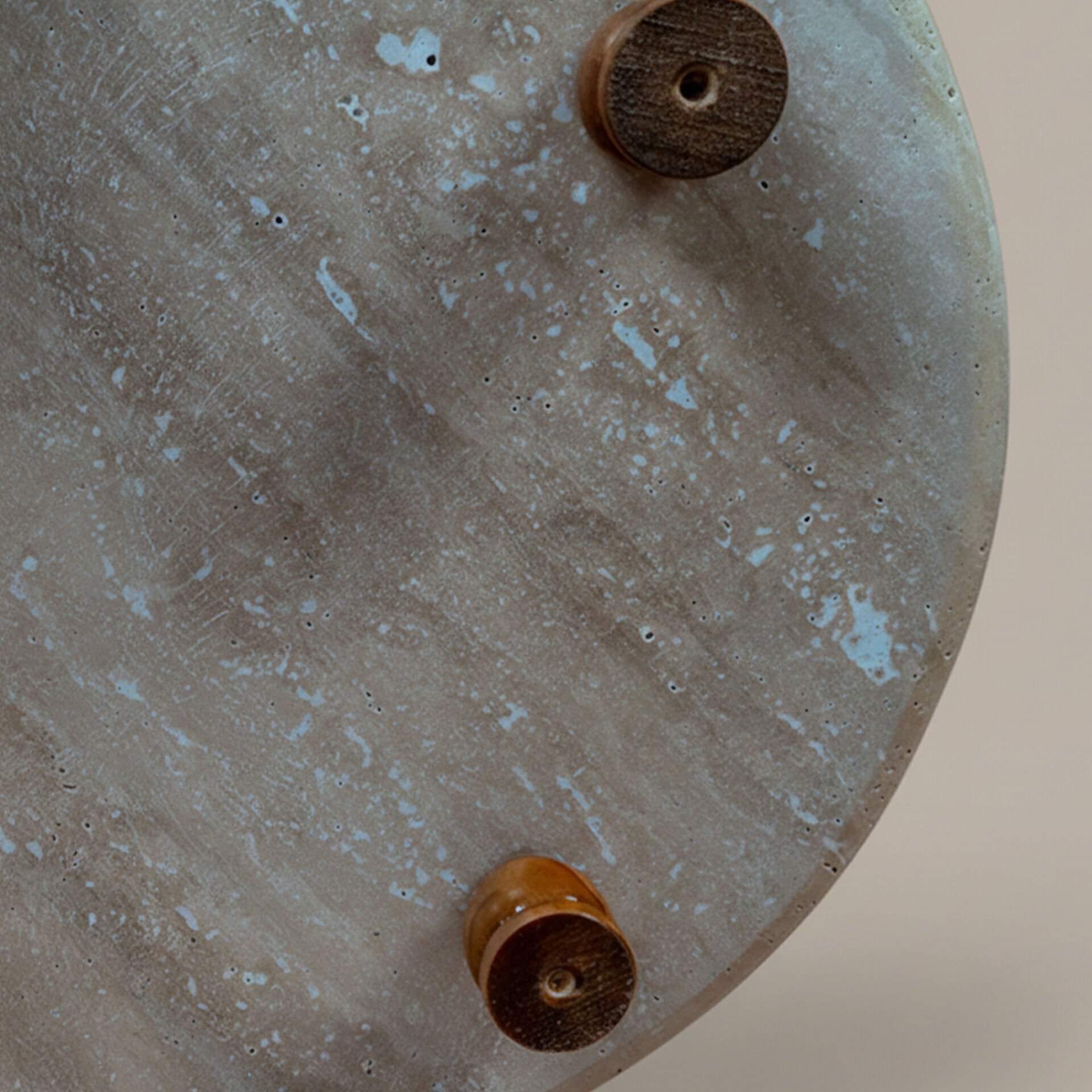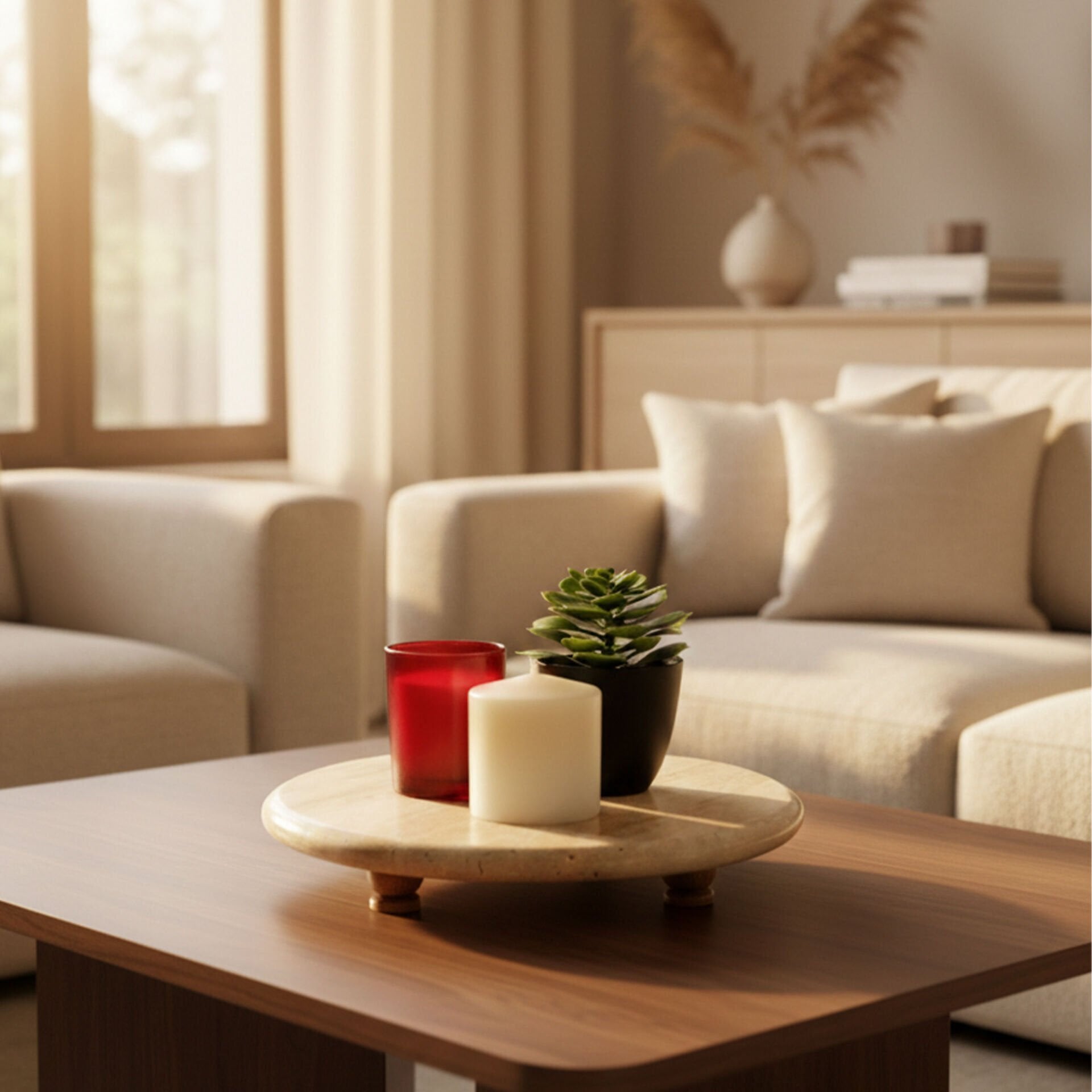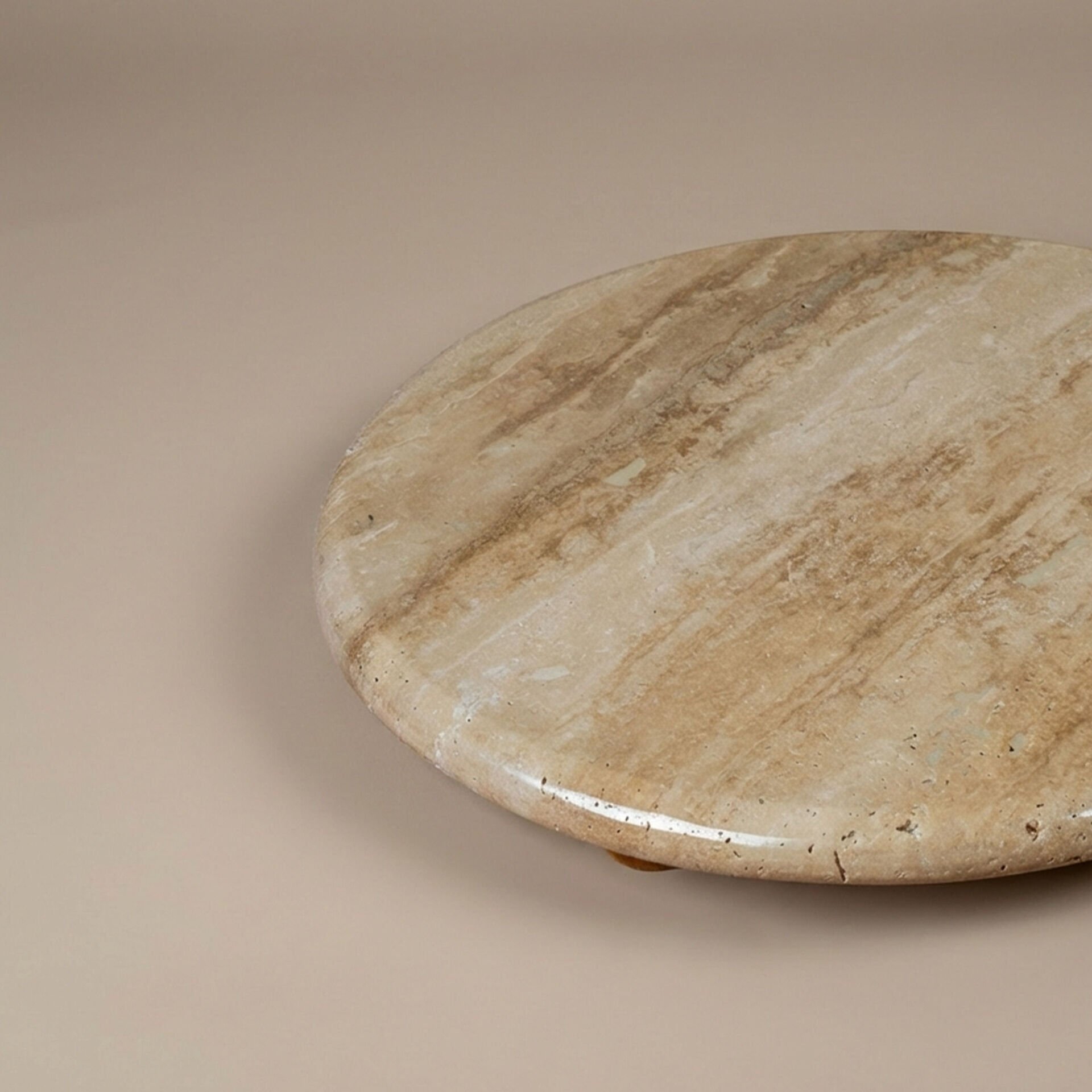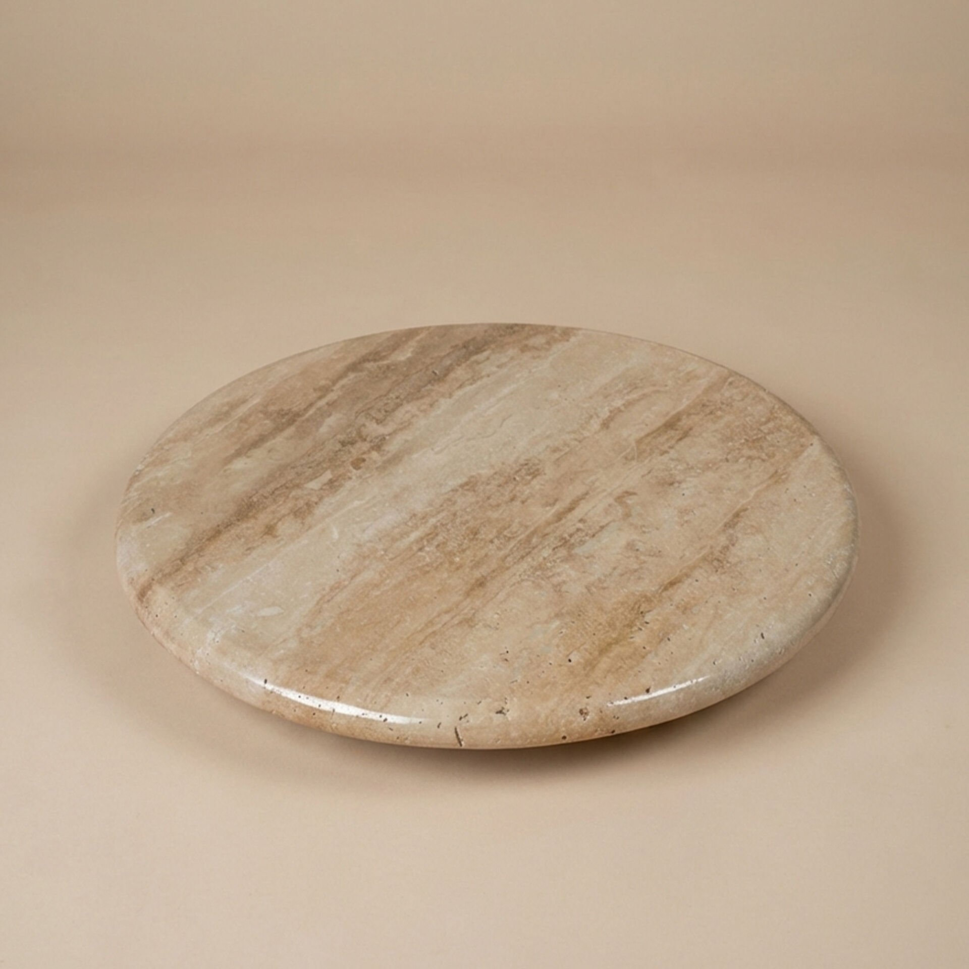 - Materyal: %100 Doğal Traverten (Üst Tabla), Masif Ahşap (Ayaklar)