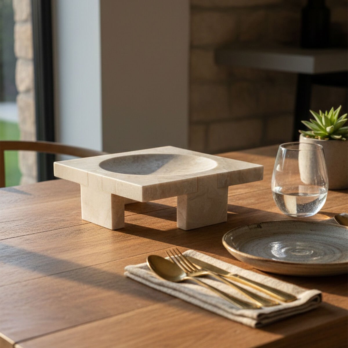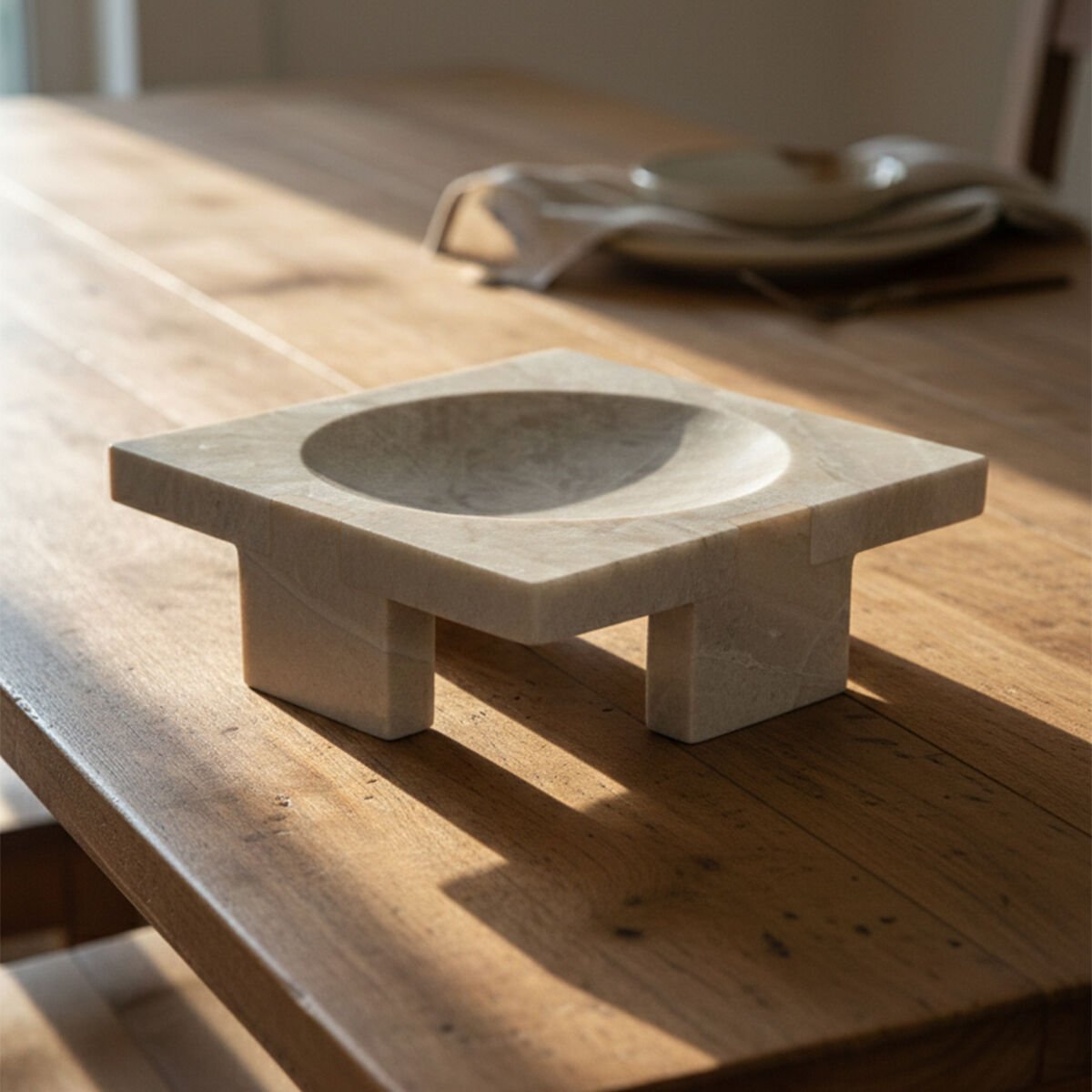 Masif mermer yapısı nedeniyle belirli bir ağırlığa sahiptir. Bu durum ürünün stabilitesini artırır; tek elle dikkatli taşınması önerilir.