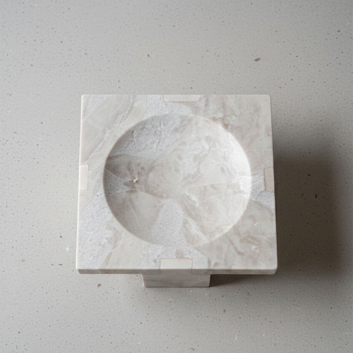 Üst yüzeyde yer alan hafif oyuk form, sunulan objenin merkezlenmesine yardımcı olurken; dört ayaklı sağlam gövde yapısı hem denge hem de heykelsi bir görünüm sunar. Doğal mermerin kendine özgü damarları ve renk geçişleri sayesinde her bir stand benzersizdir.