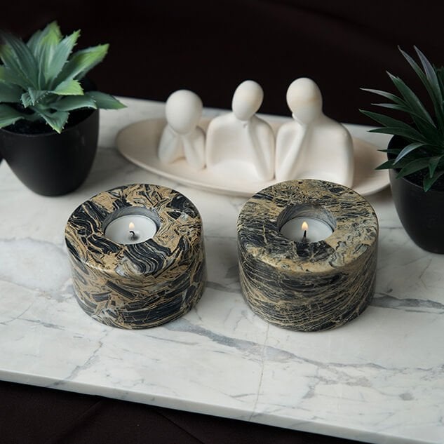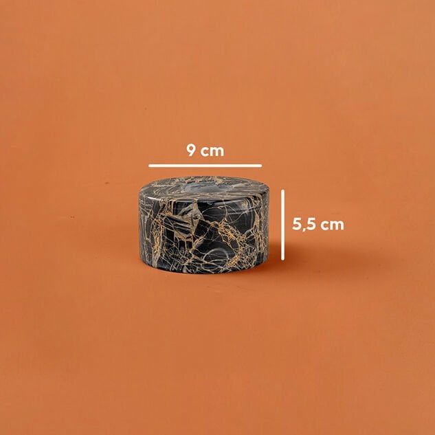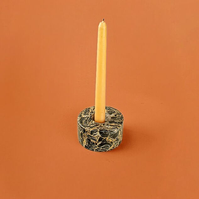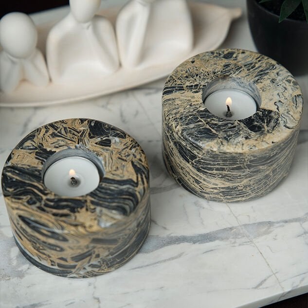 Doğal taşın eşsiz güzelliğini zarif bir tasarımla buluşturan Candela Mumluk, yaşam alanlarınıza sofistike bir atmosfer katar. Nero Picasso Mermerinden el işçiliğiyle üretilen bu özel mumluk, siyah zemin üzerindeki dramatik altın ve gri damarlarıyla her mekânda dikkat çekici bir dekoratif obje olarak öne çıkar.