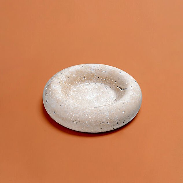 Gocci Oval Kase, doğal Light Traverten mermerinden ustalıkla işlenmiş zarif bir tasarıma sahiptir. Doğal bej tonları ve yüzeyindeki özgün gözenek yapısı ile bulunduğu ortama sıcaklık ve doğallık katar. Oval ve yumuşak hatlarıyla hem modern hem de klasik dekorasyon anlayışına uyum sağlar.