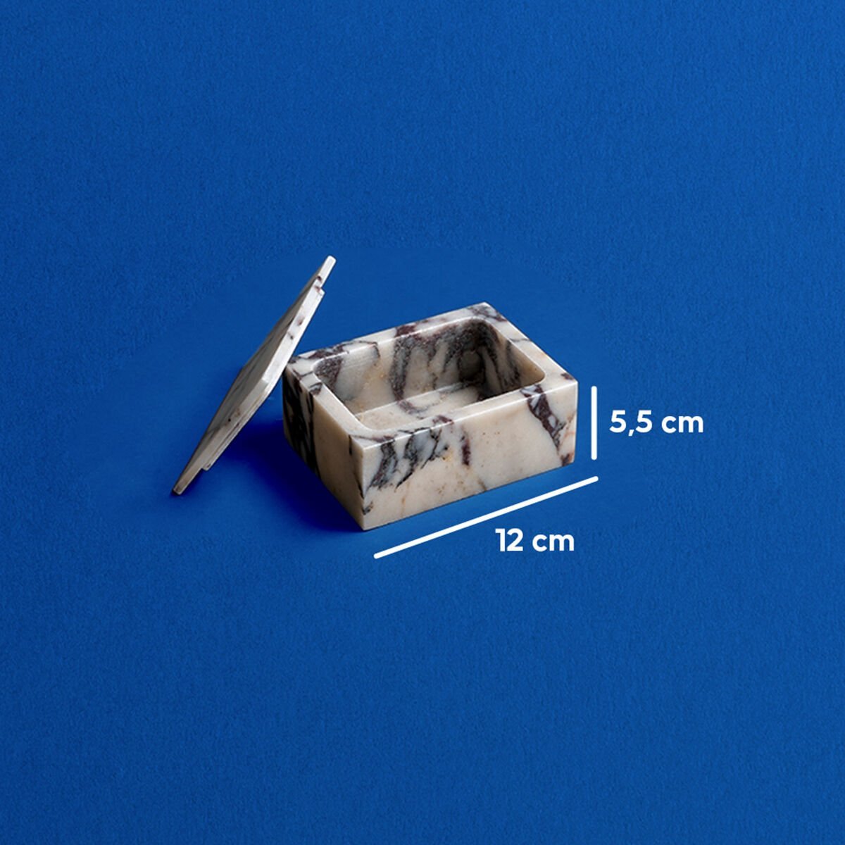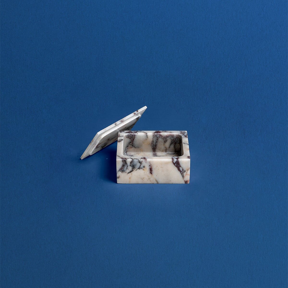 Piccolo Mermer Kutu, doğal Violet mermerinden el işçiliğiyle üretilmiş, zarif ve fonksiyonel bir dekoratif objedir. Açık bej/krem tonlar üzerine gri ve siyah damarların eşsiz dokusuyla öne çıkan bu kutu, doğal taşın sunduğu lüks hissi yaşam alanlarınıza taşır. Bazı örneklerde hafif morumsu damarlarla benzersiz bir görünüm kazanır.