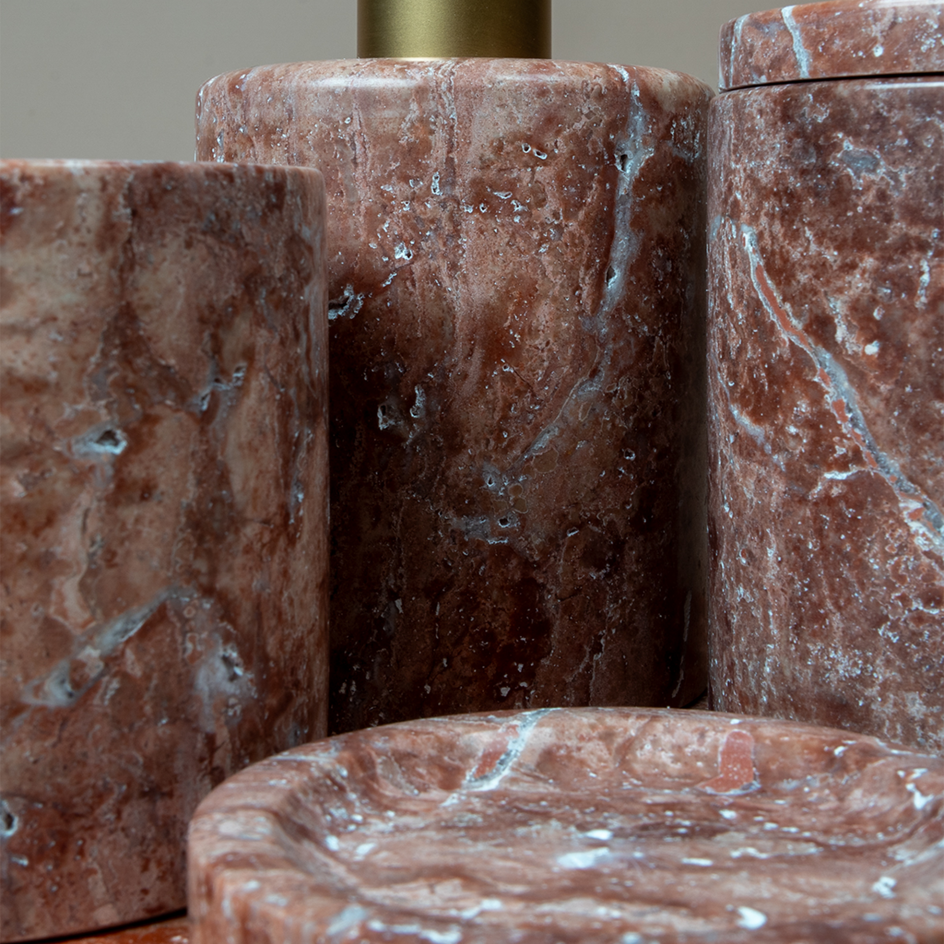 Doğal traverten taşının sıcak ve doğal dokusunu banyonuza taşıyan Traverten Mermer Banyo Seti, tamamen el işçiliği ile üretilmiş modern ve dekoratif bir banyo aksesuar takımıdır. Gözenekli traverten yüzeyi ve dikey oyma detayları sayesinde rustik, doğal ve şık bir görünüm sunar. Farklı renk ve doku varyantlarıyla her banyo dekorasyonuna uyum sağlar.